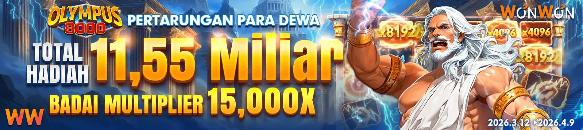 EVENT WONWON OLYMPUS 8000 CLASH OF THE GODS TANGGAL 12 MARET hingga 09 APRIL 2026